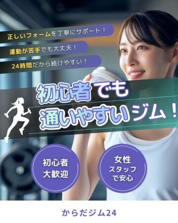 「からだジム24」では、入会から半年間はパーソナルトレーニングが無料。正しい器具の使い方を学び、自分の目標に合わせたトレーニングペースを相談できるので、効果が出やすく、続けやすい環境を提供します。気軽に運動不足を解消したい方にもぴったりです。