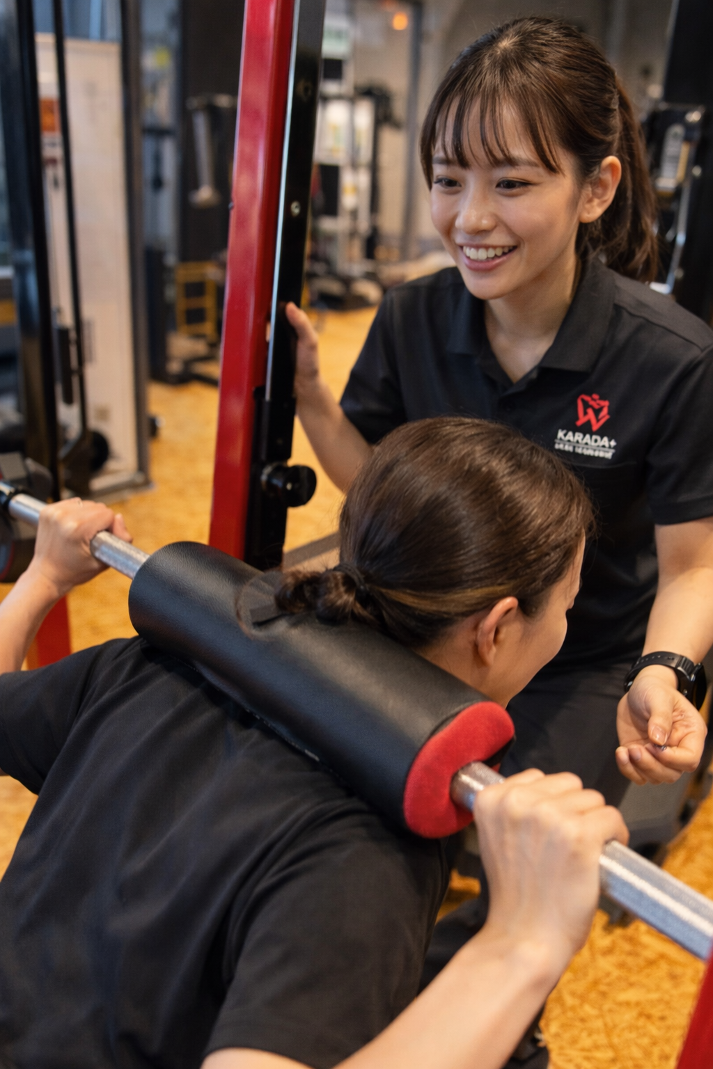 入会後も4回無料パーソナルトレーニングではジムの設備やトレーニング方法、負荷の掛けかたなどの、ジムの活用方法をスタッフがマンツーマンでサポートするサービスです。無料パーソナルトレーニングはスマホで簡単に予約出来、自分の都合合う時間帯を予約するだけでスタッフがサポート致します。なので初心者の方やジムでトレーニングを継続すのに自信のない方にもとても安心なサービスとなっております。"ジムに通う自信がない方"や"年齢的に昔より痩せにくくなった方"といったご希望のあるお客様に特にご好評頂いております。