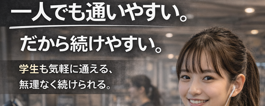 スタッフとの距離が近く、気軽に立ち寄れる雰囲気でジム通い・トレーニングが習慣化しやすい。大学生から40代・50代まで幅広い会員様がご利用です。